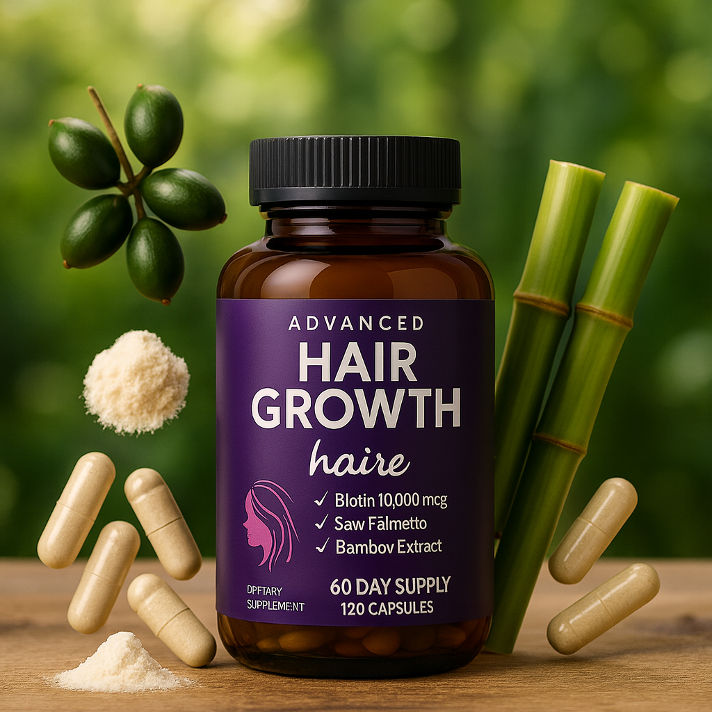 haire Advanced Hair Growth strengthens hair from the root, reduces shedding, and promotes fuller, shinier strands. With Biotin, Collagen, OptiMSM®, Saw Palmetto, Bamboo Extract, and Fo-ti Root, it nourishes follicles, supports natural growth, and restores smooth, glossy hair.